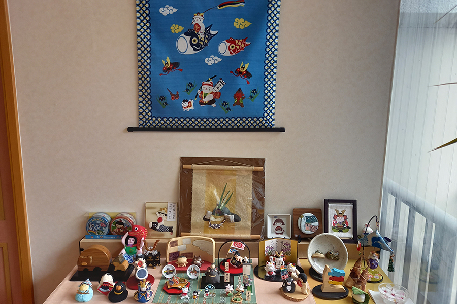 待合室から玄関を望む         季節のしつらえコーナー