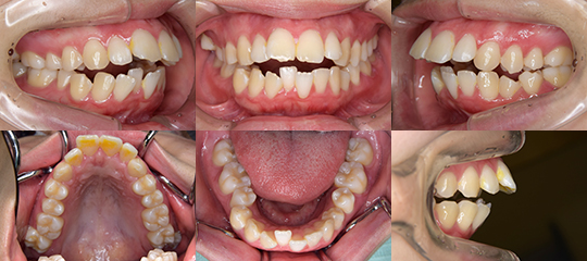 以下にも上下顎前突の症例の初診時の口腔内写真を示しています。